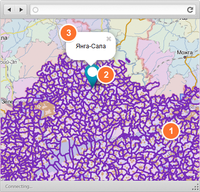 Включается первый или первые два слоя. Необходимо кликнуть на карту, чтобы получить список объектов в выбранной точке.